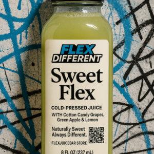 Sweet Flex$9.00Cotton Candy Grapes Green Apple Lemon Mint Leaves (optional) This juice has a naturally sweet, almost vanilla-cotton-candy essence with a crisp apple finish and a bright hint of lemon.