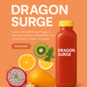 Dragon Surge$9.00 – $18.00Price range: $9.00 through $18.00Dragon fruit Kiwi Orange Lemon Mango Ginger Fuel your fire with Dragon Surge- This vibrant juice is crafted to energize your body and elevate your vibe. Why it hits different: Dragon Surge isn’t just a juice= its a power-up in a bottle. Great for pre-workout, mid day boosts, or when you need to flex your wellness.